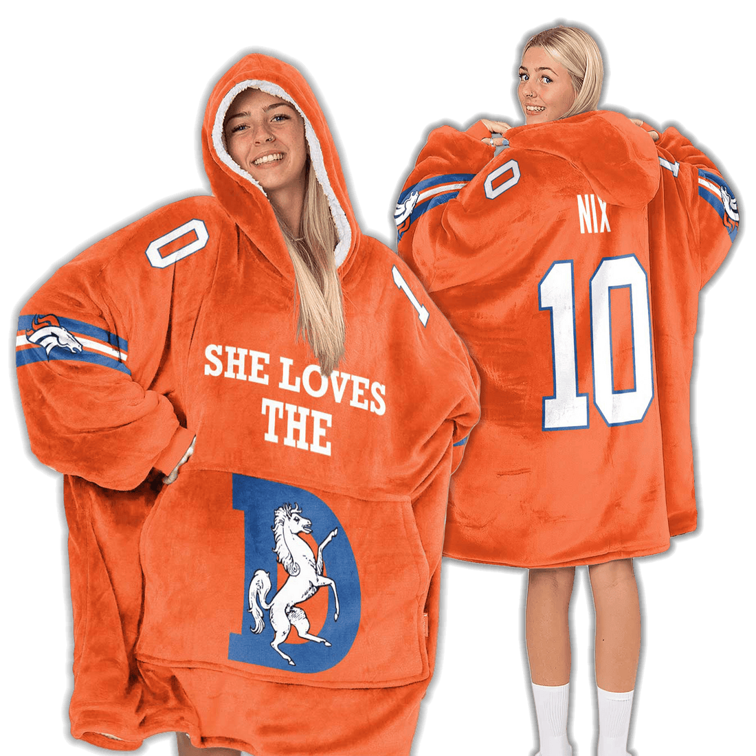 She Loves The D Denver Football Unisex Blanket Hoodie