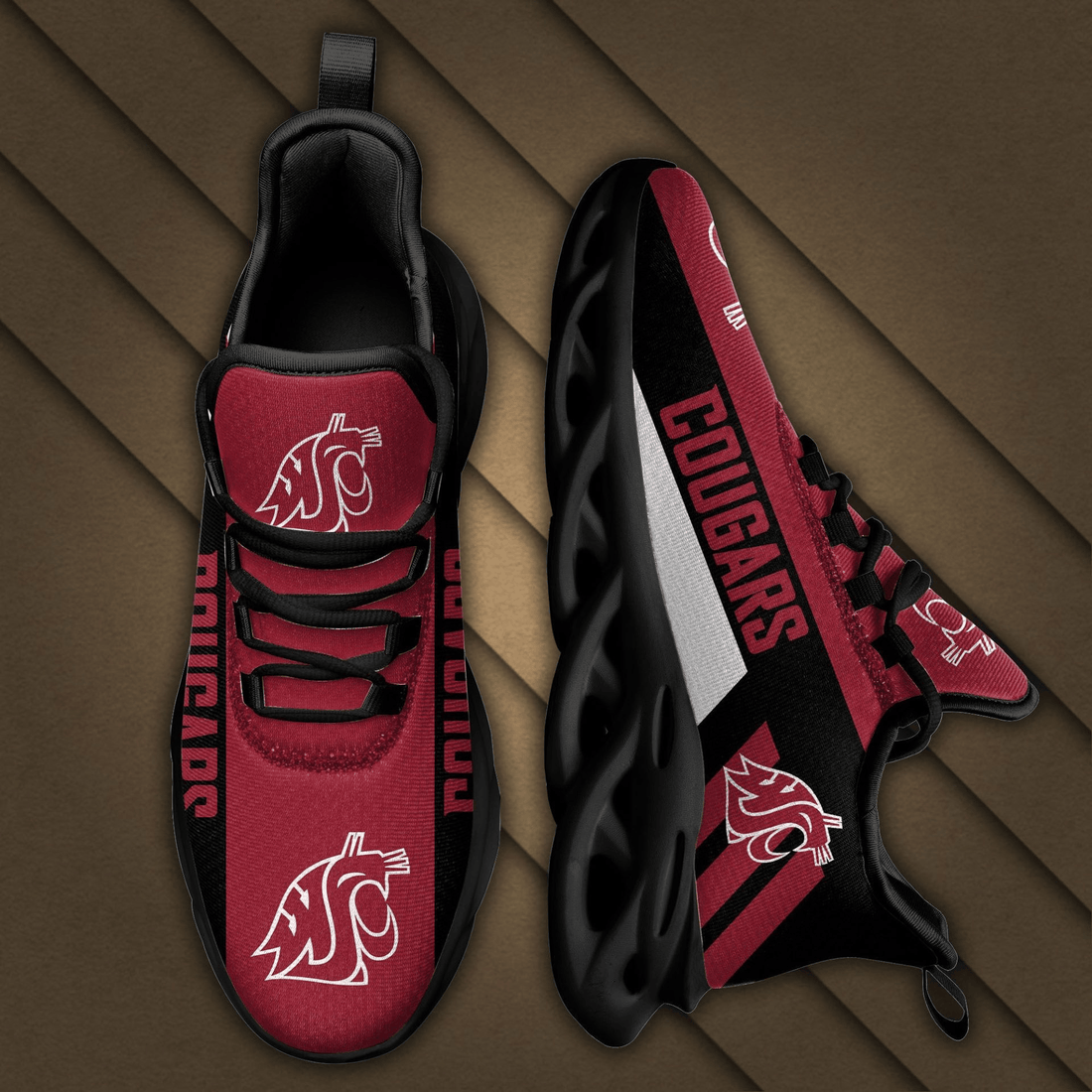 Washington State Cougars Red Black Max Soul Shoes Sport Sneakers
