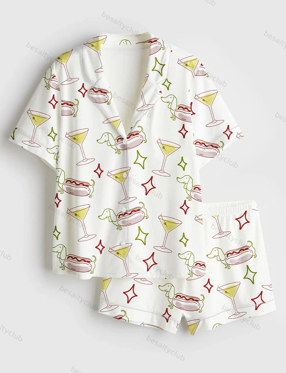 Women’s Martinis And Weenies Bachelorette Tinis & Weenies Design Hot Dog Birthday Theme Dirty Martini Short Sleeve Satin Pajama Set