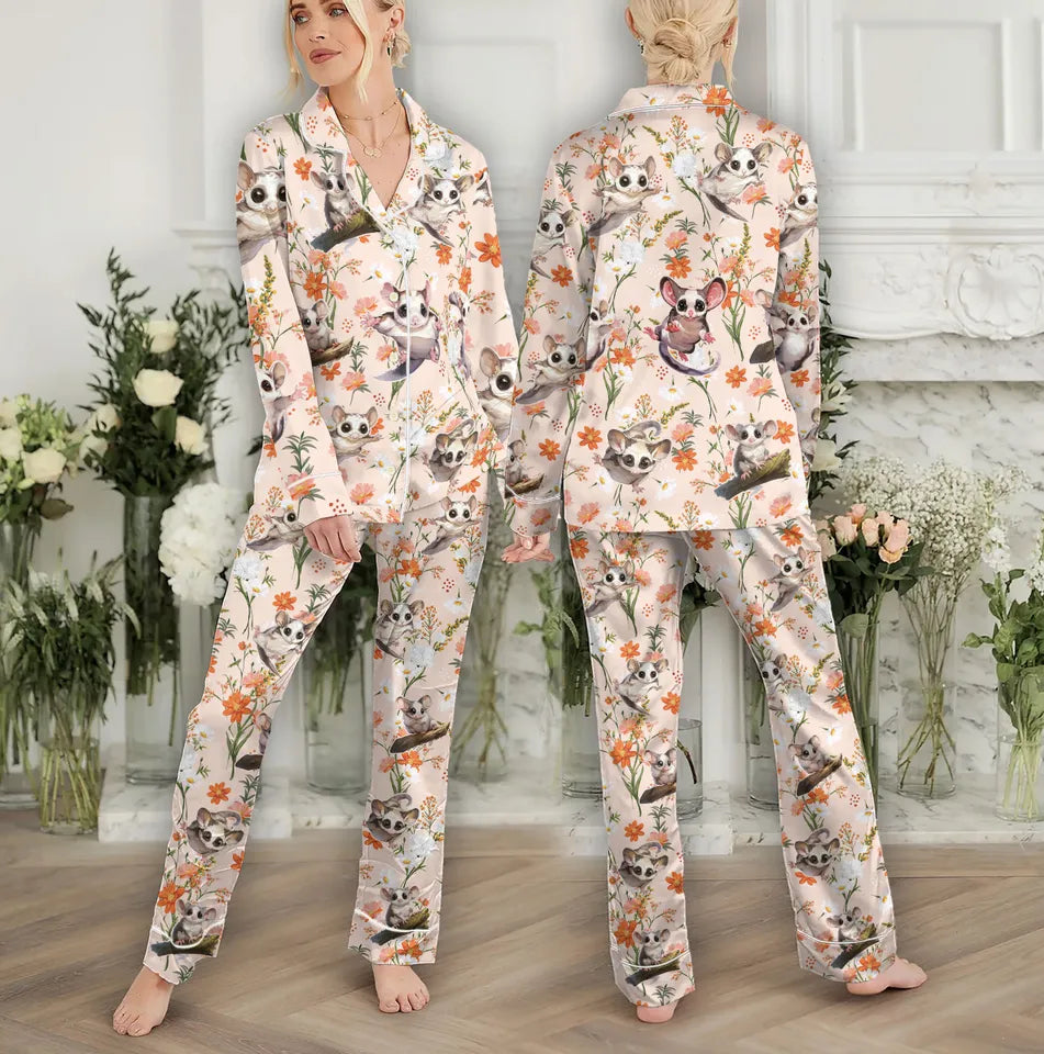 Floral Sugar Glider Pajamas Animal Pajama Set Family, Funny Sugar Glider Matching Pajamas Set, Couple Pajamas, Birthday Gift