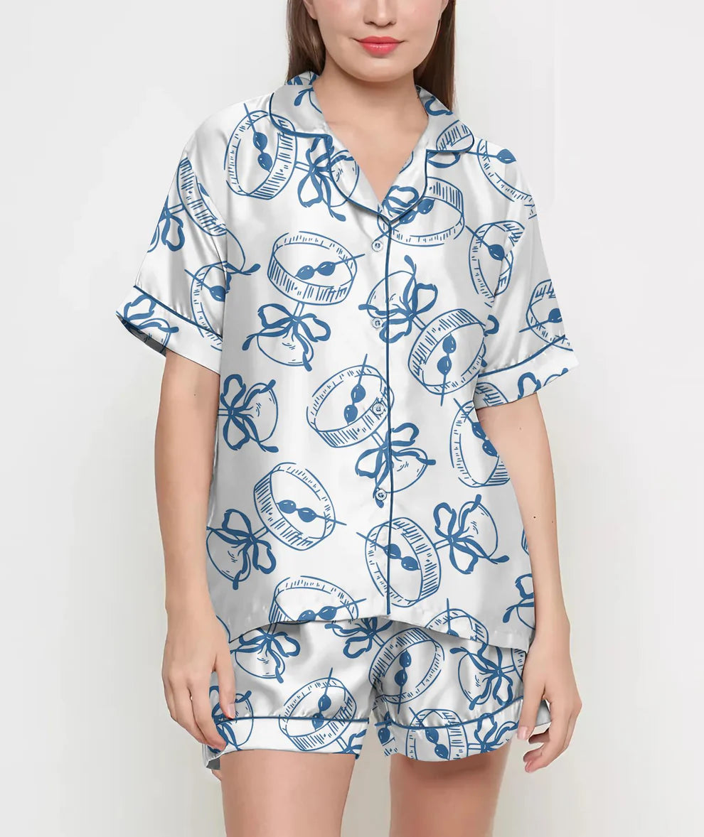 Martini Espresso Coquette Pajamas Satin Set, Blue Martini Shirt,Mother's Day Gift, Birthday Gift, Gift For Her, Bridesmaid Gifts, Women Gift