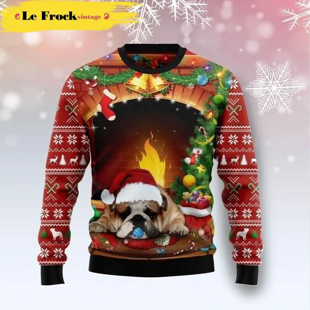 Sleeping Pug Dog Christmas Ugly Christmas Sweater, Jumper