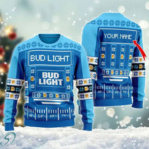 Snowy Bud Light Ugly Christmas Sweater, Jumpers