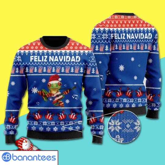 Frog Puerto Rico Feliz Navidad Merry Christmas All Over Print Ugly Sweater