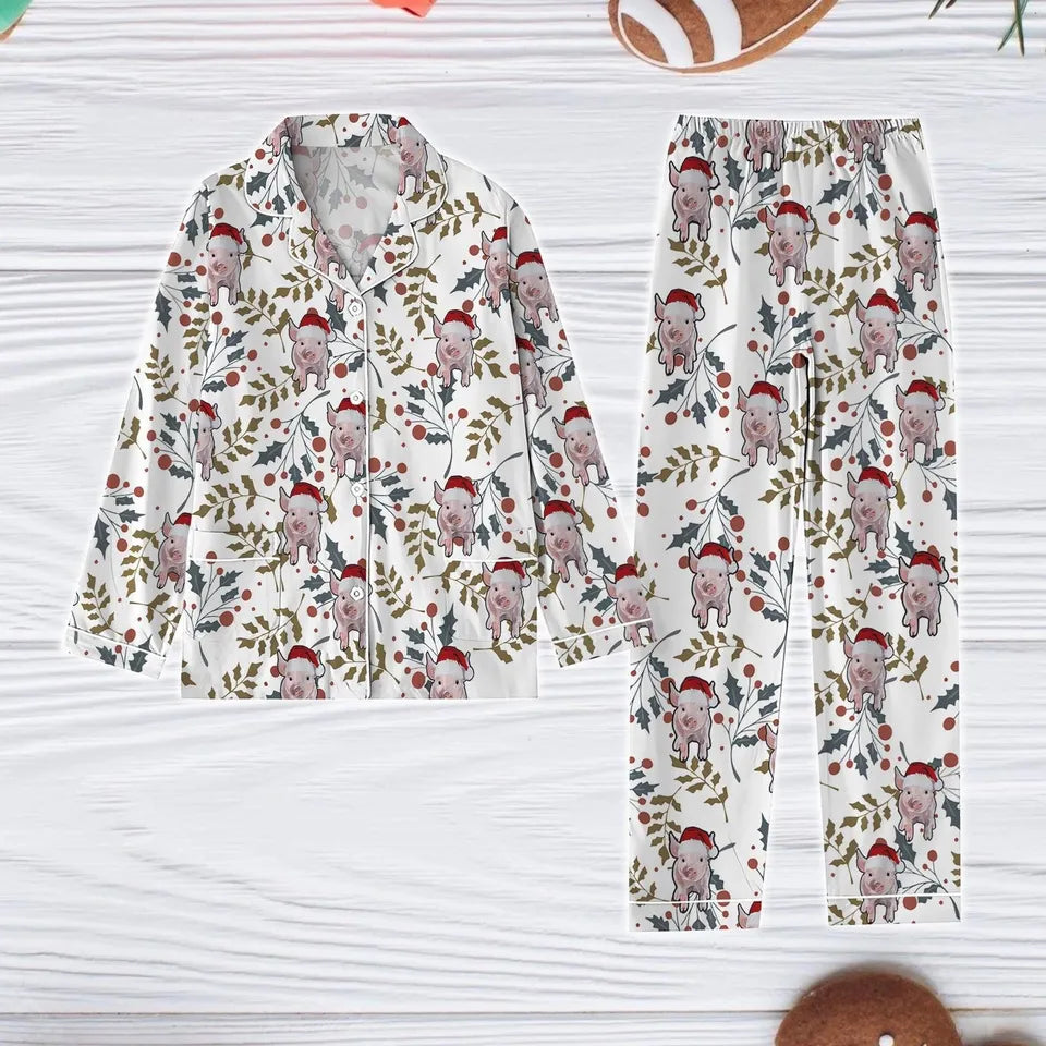 Cute Pigs Christmas Pajamas, Pig Mom Holiday Pajamas, Funny Pig Xmas Pajamas Set, Animal Lover Gift, Farm Life Christmas Pajamas
