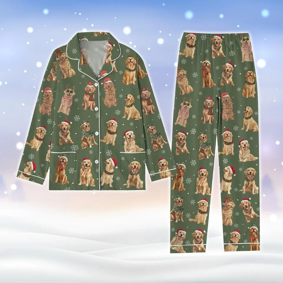 Golden Retriever Christmas Pajamas Set, Golden Dog Holiday Pajamas, Golden Mom Xmas Pajamas, Gift For Dog Owner, Dog Lover Gift
