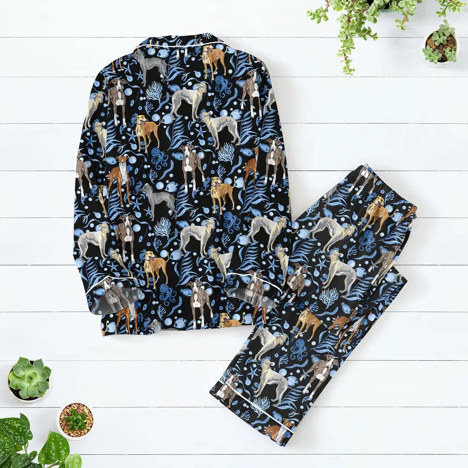 Greyhound Pajamas Set, Dog Women Pajamas, Animal Lover Gift, Dog Mom Thick Pajamas