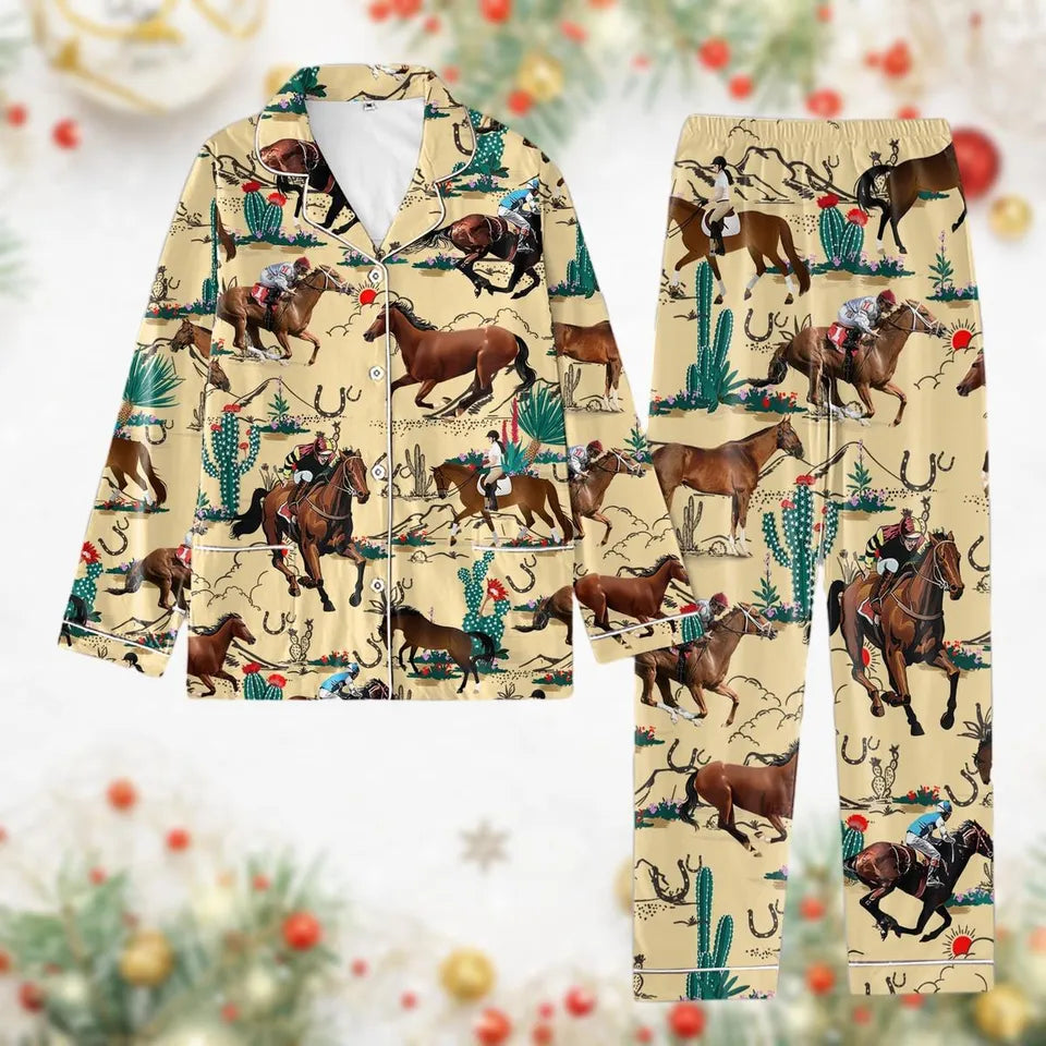 Christmas Horse Pajamas Set, Horse Lover Animal Pj Set, Xmas Gift For Horse Mom, Horses In A Row Holyday Pajamas, Xmas Farm Animals Pajamas