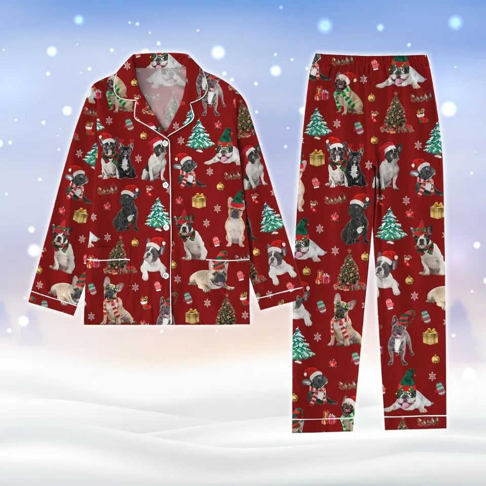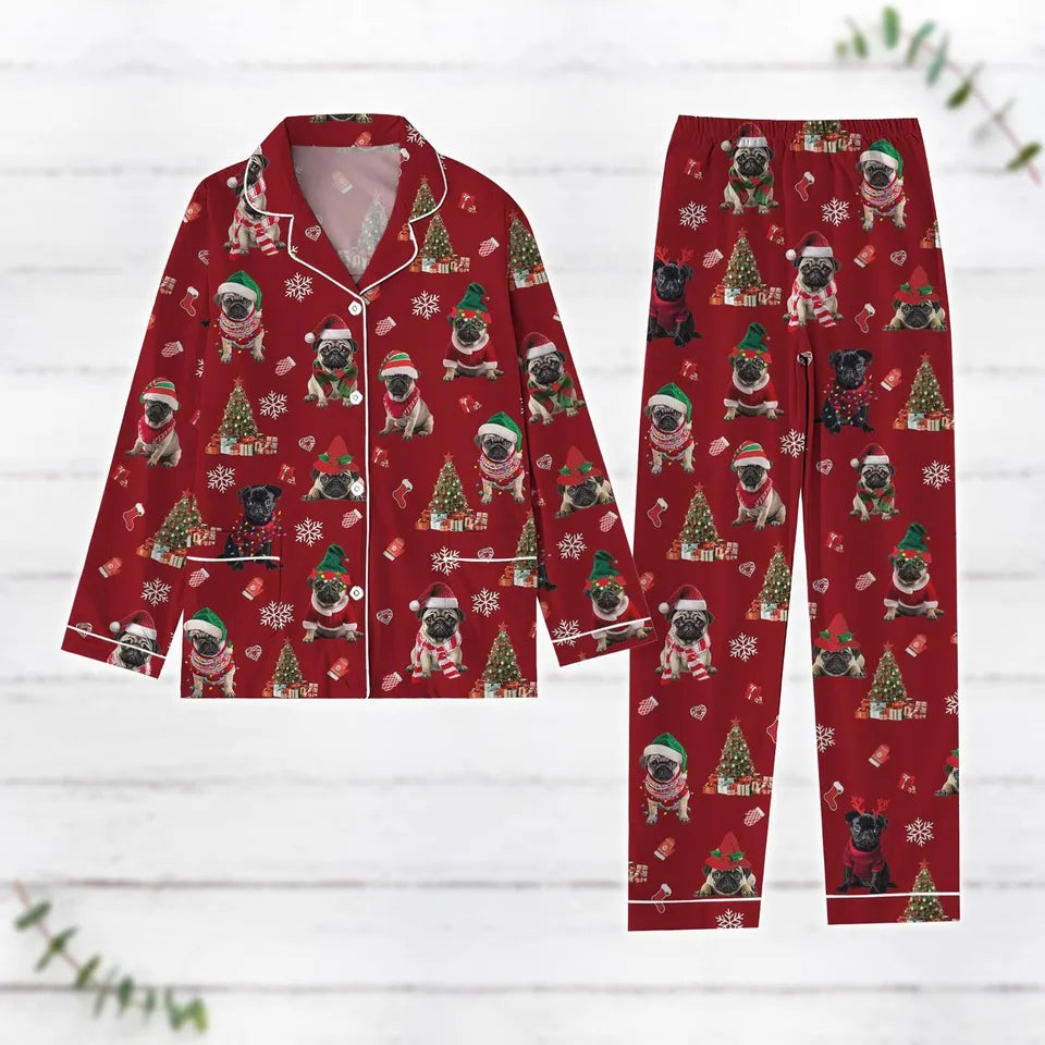 Christmas Pug Dog Pajamas Set, Dog Lover Holiday Pajamas, Cute Dog Pajamas, Pug Mom Xmas Pajamas, Pet Lover Gift, Pjs For Women