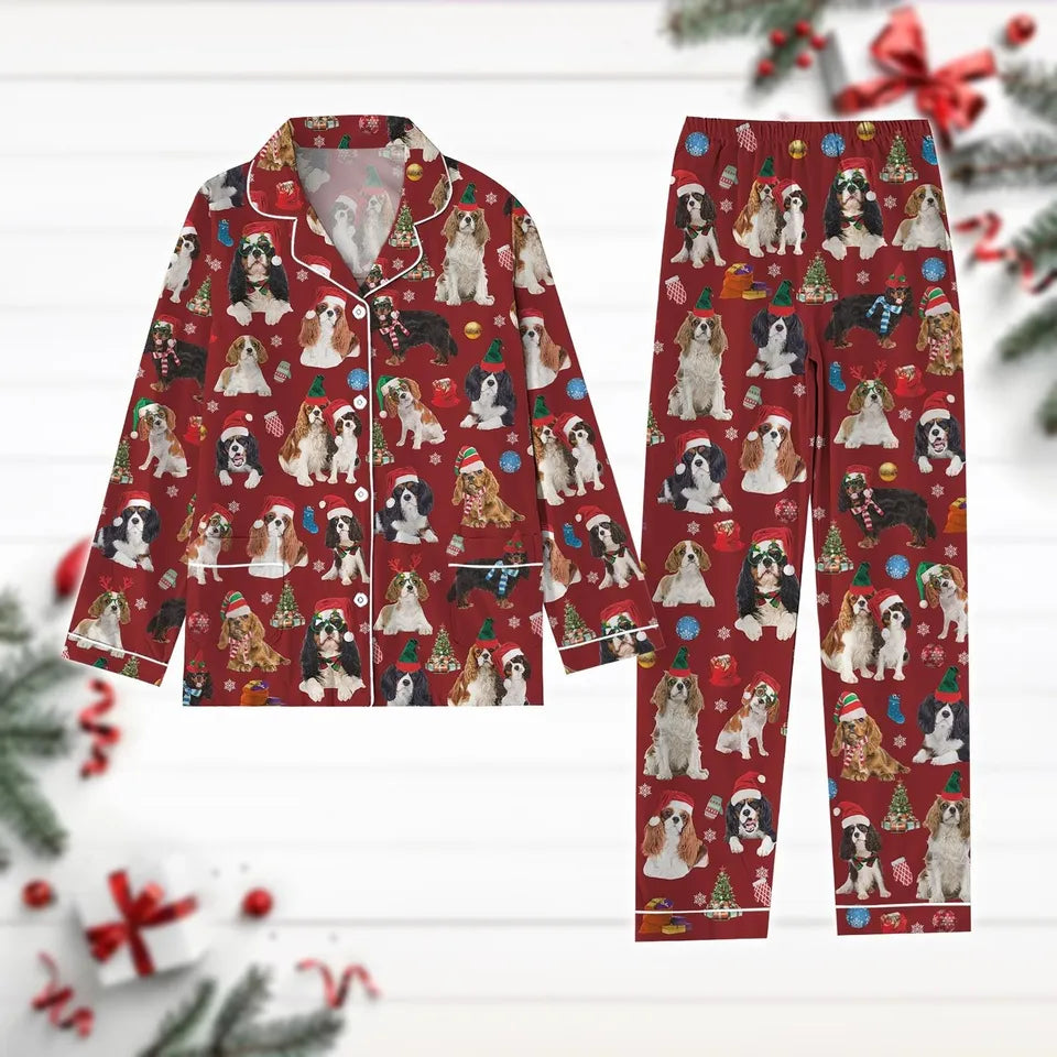 Christmas Cavalier King Charles Spaniel Pajamas Set, Cute Cavalier Dog Xmas Shirt, Pet Dog Holiday Pyjamas, Dog Mom Gift, Pajamas Pants