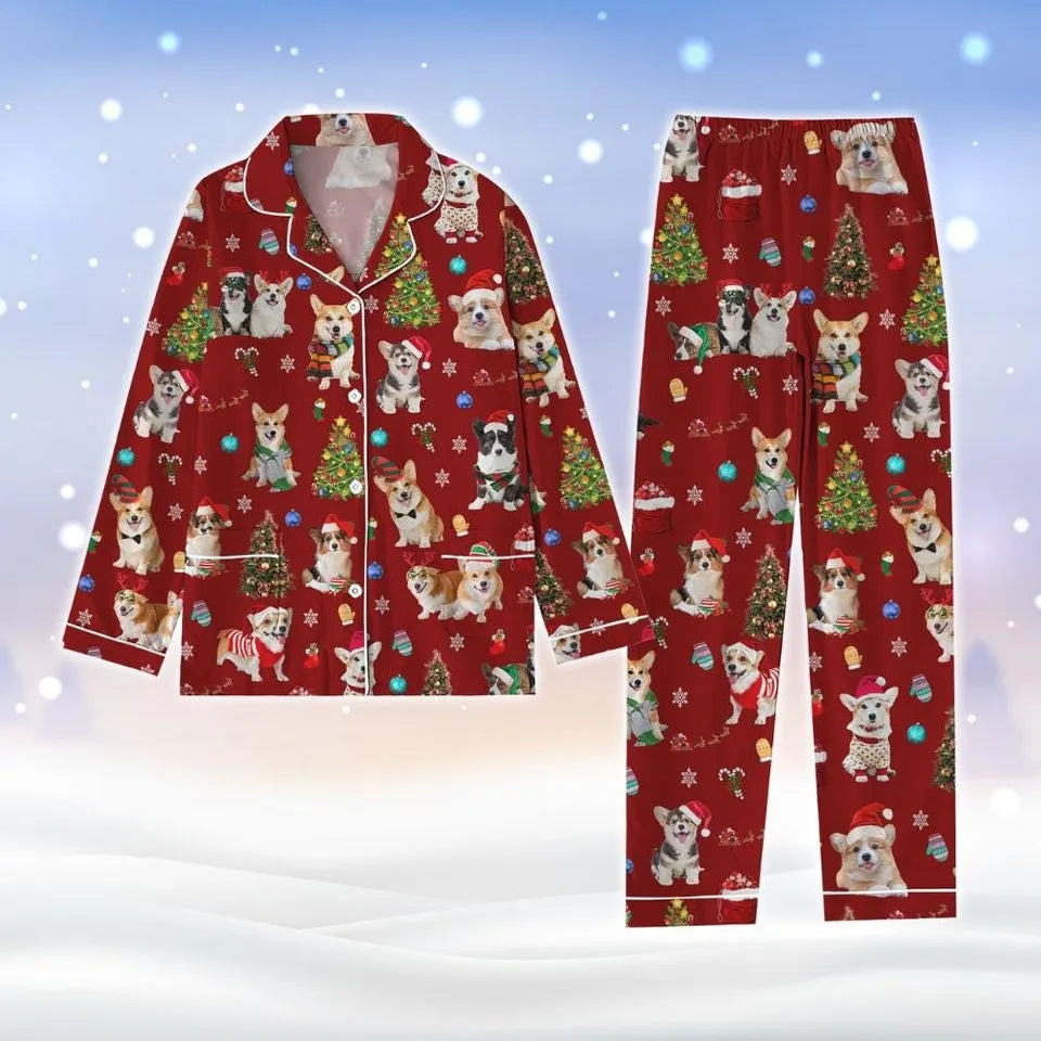 Christmas Corgi Dog Pajamas Set, Corgi Santa Hat Holiday Pajamas, Corgi Lover Xmas Pajamas, Cute Pets Pajamas, Dog Mom Shirt