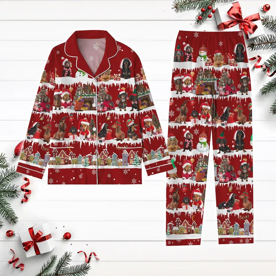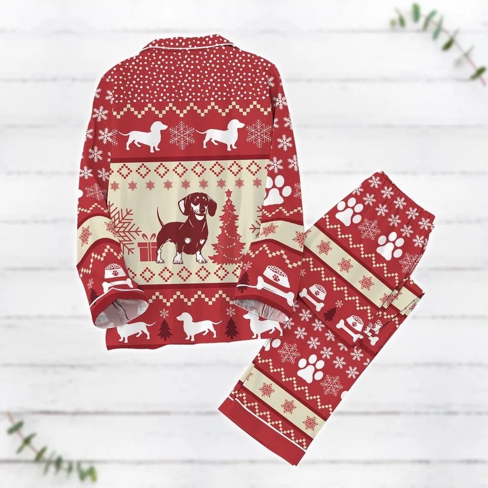 Christmas Dachshund Dog Pajamas Set, Wiener Dog Xmas Pajamas Pants, Christmas Tree Holiday Pajamas, Pet Pjs For Party, Dog Mom Gift