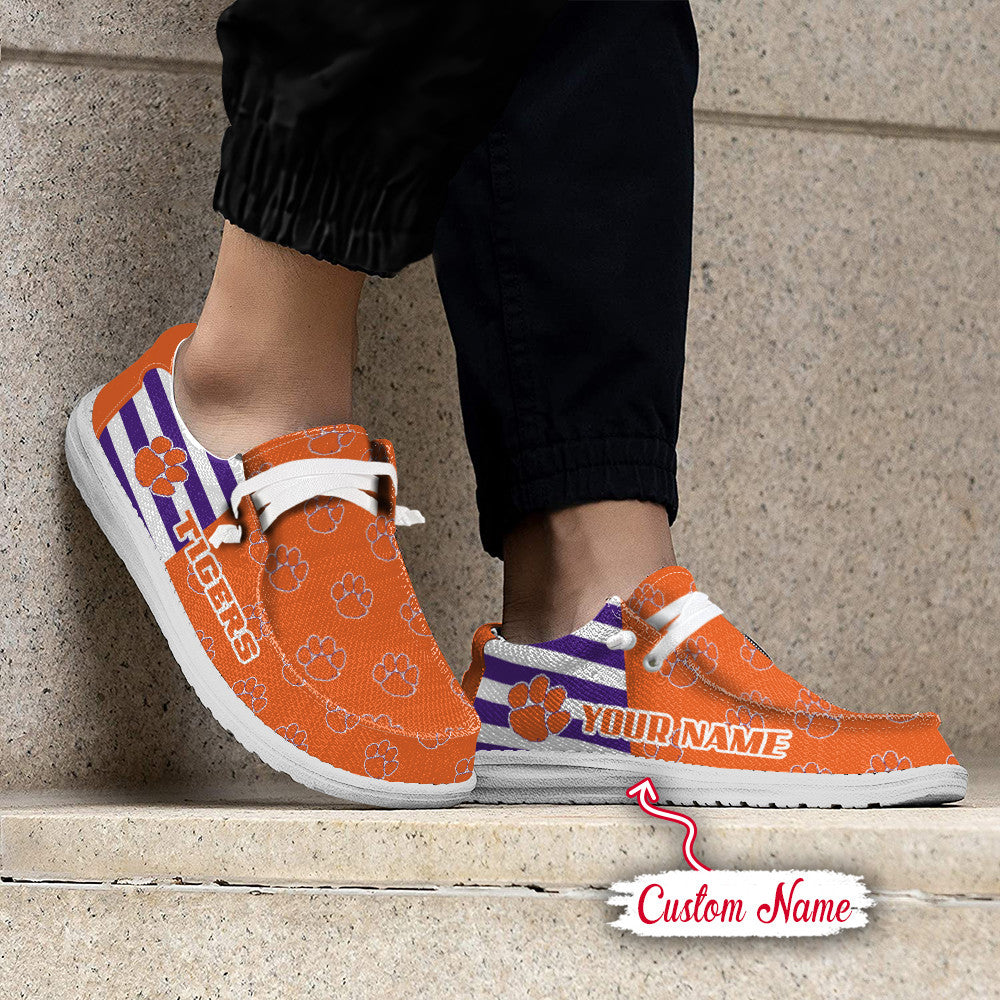 NCAA 05 Clemson Tigers Football Hey Dude Canvas Loafer Shoes-Custom Name