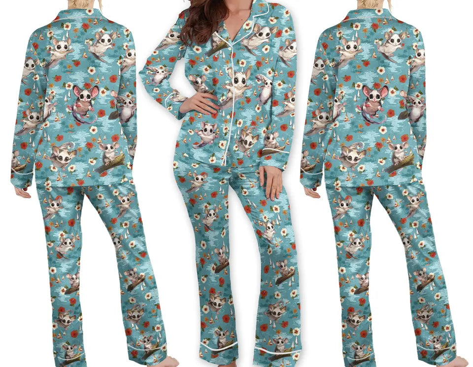 Vintage Sugar Glider Pajamas Animal Lover Vacation Pajama Set Women, Sugar Glider Owner Hawaiian Pajamas, Holiday Gift for Her