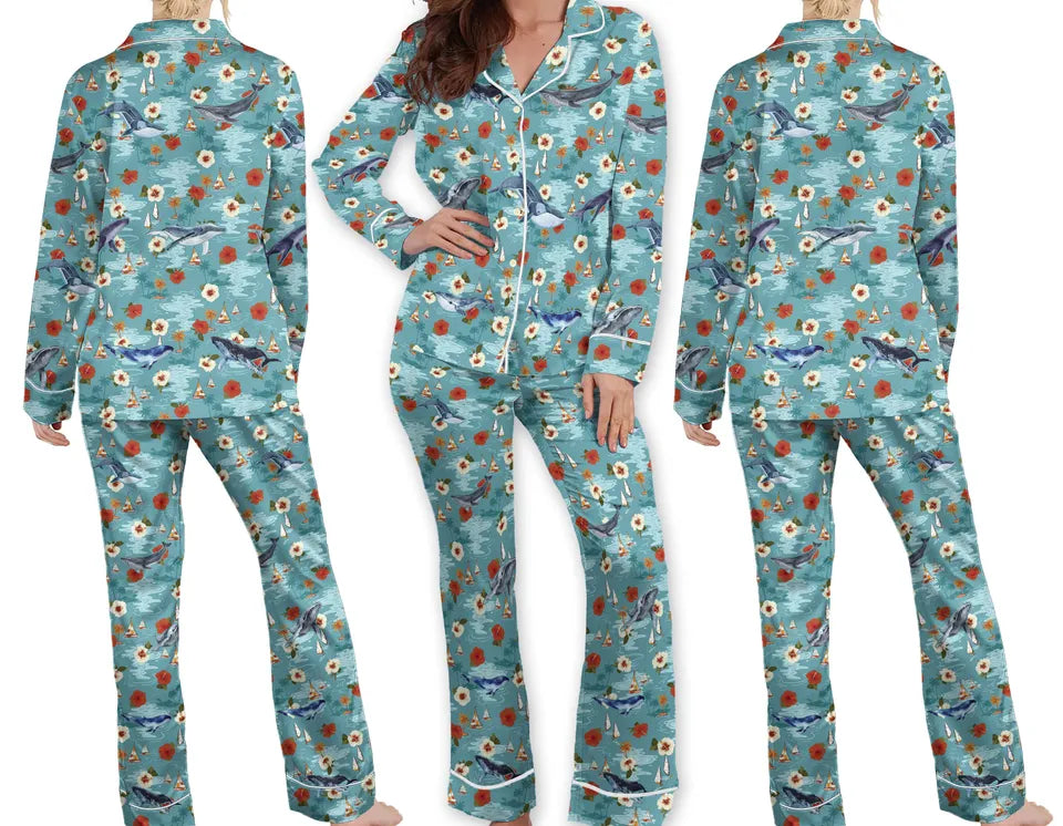 Whale Ocean Animal Pajamas Whale Lover Aloha Holiday Hawaiian Pajamas, Killer Whale Pjs Set for Women, Animal Lover Gift for Her