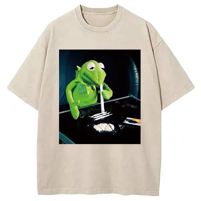 Personality fashion Frog Cocaine Drug Hipster Funny Washed T-Shirt