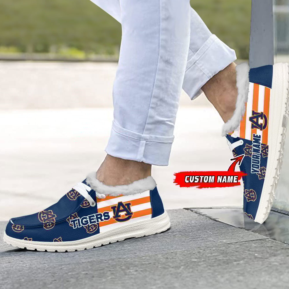 Custom Name NCAA 03 Auburn Tigers Hey Dude with warm fur lining Shoes