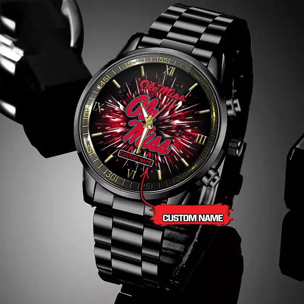 NCAA Ole Miss Rebels Football Team Logo Design Black Watch
