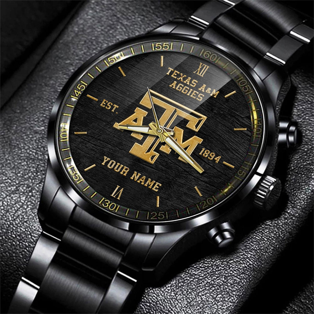 Texas A&M Aggies Black Fashion Watch Custom Your Name And Year, Sport Watch, Sport Gifts For Football Fans ETRG