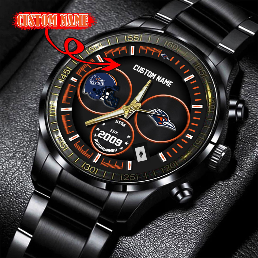 UTSA Roadrunners Black Stainless Steel Watch - Custom Name 58437