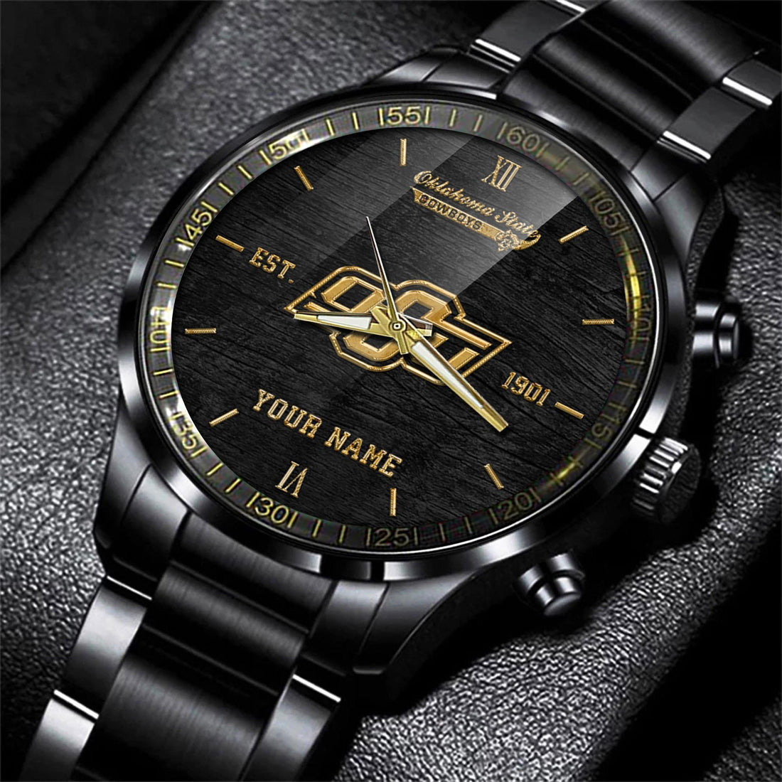 Oklahoma State Cowboys Black Fashion Watch Custom Your Name And Year, Sport Watch, Sport Gifts For Football Fans ETRG