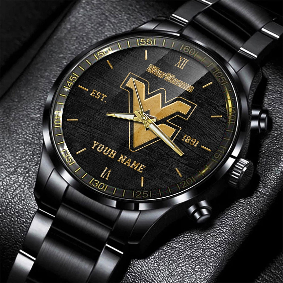 West Virginia Mountaineers Black Fashion Watch Custom Your Name And Year, Sport Watch, Sport Gifts For Football Fans ETRG