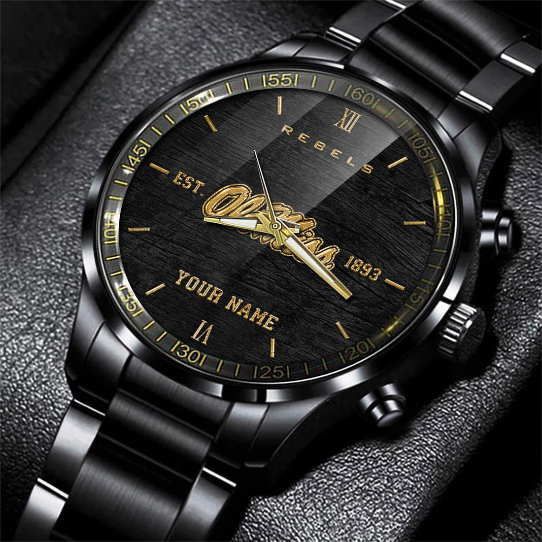 Ole Miss Rebels Black Fashion Watch Custom Your Name And Year, Sport Watch, Sport Gifts For Football Fans ETRG