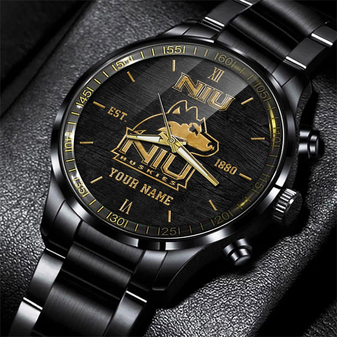 Northern Illinois Huskies Black Fashion Watch Custom Your Name And Year, Sport Watch, Sport Gifts For Football Fans ETRG