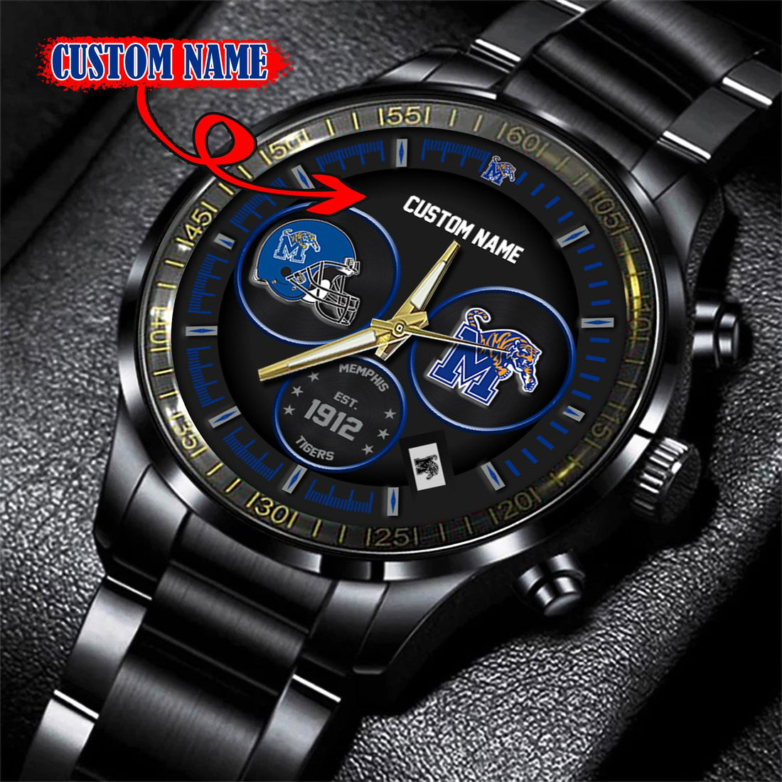Memphis Tigers Black Stainless Steel Watch - Custom Name 58437