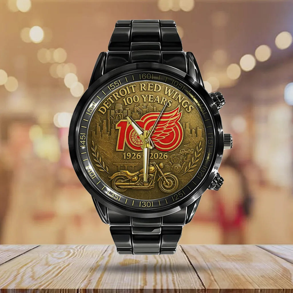 Detroit Red Wings 100th Anniversary 2026 Black Stainless Steel Watch – TANTN16095