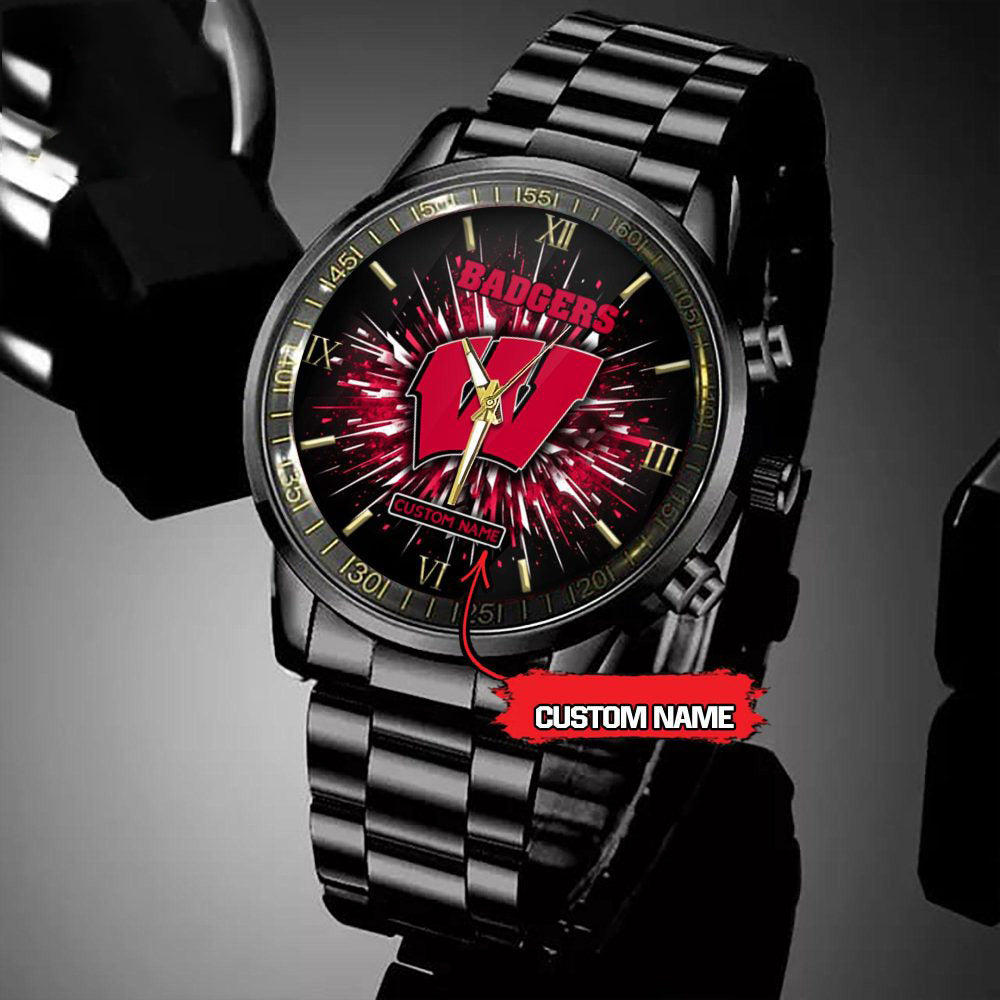 NCAA Wisconsin Badgers Football Team Logo Design Black Watch