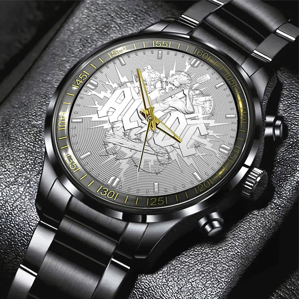 AC_DC Black Stainless Steel Watch – GNE 1306