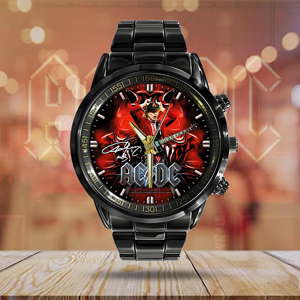 AC_DC Black Stainless Steel Watch – GNE 9691