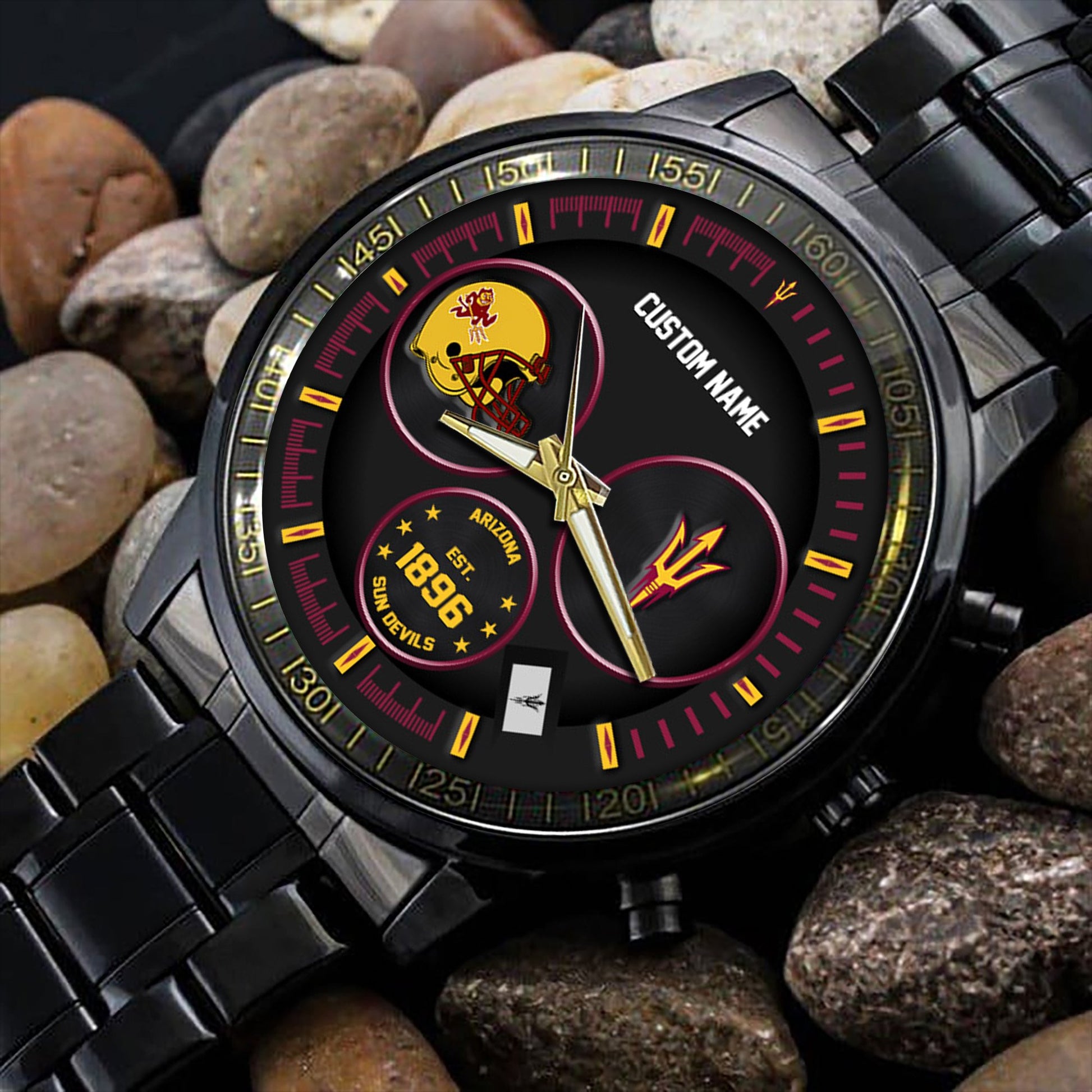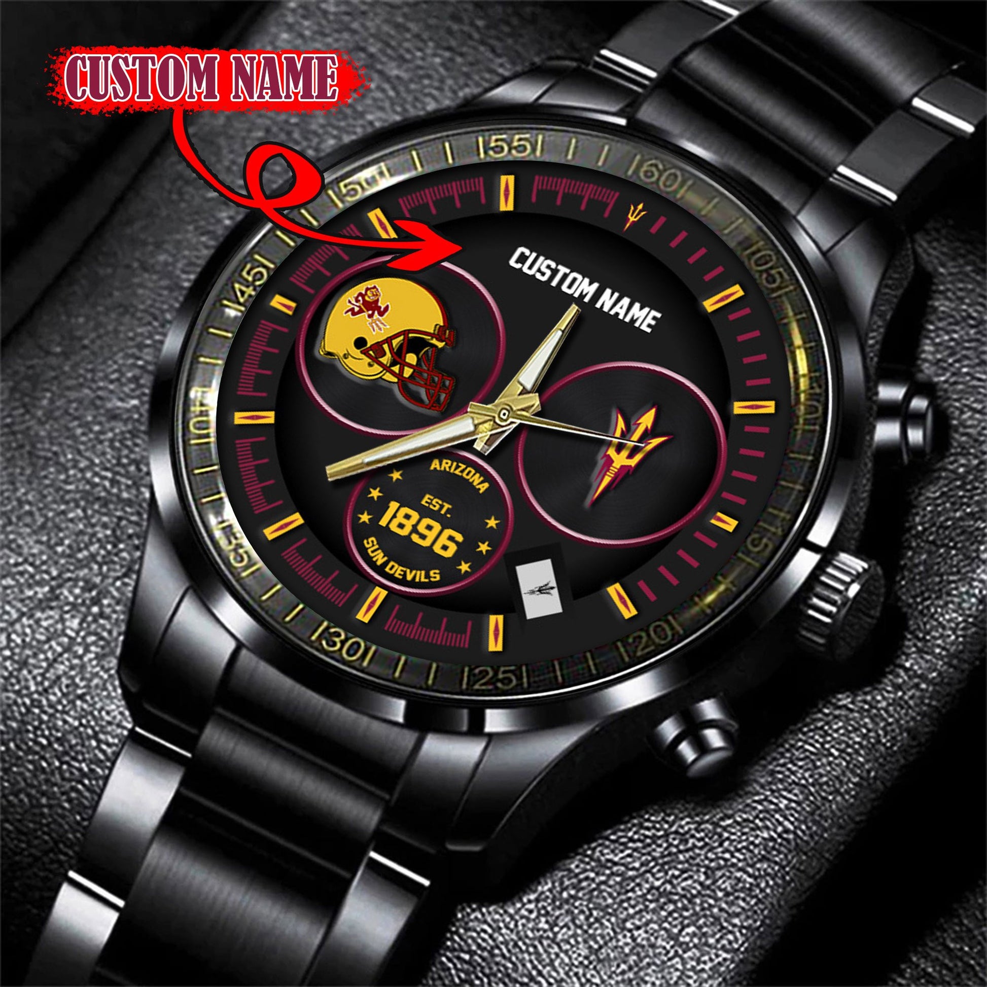 Arizona State Sun Devils Black Stainless Steel Watch - Custom Name 58437