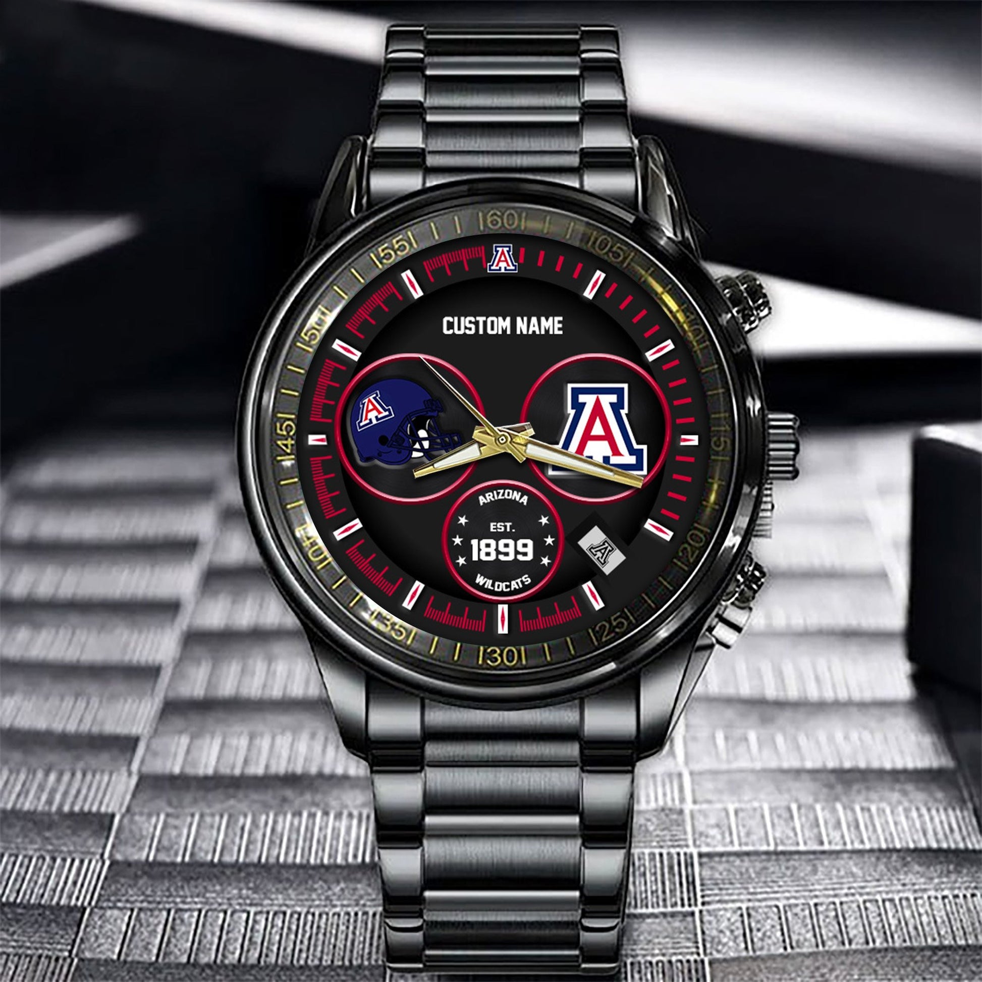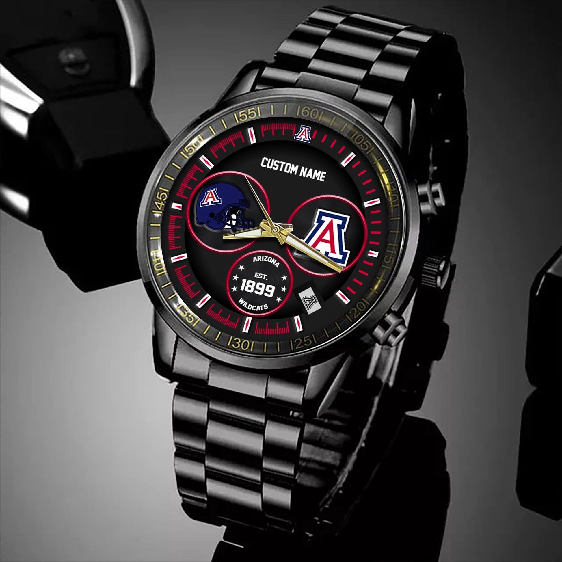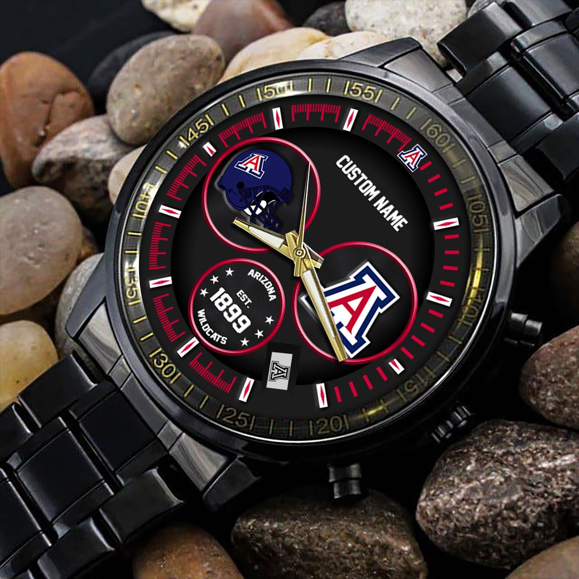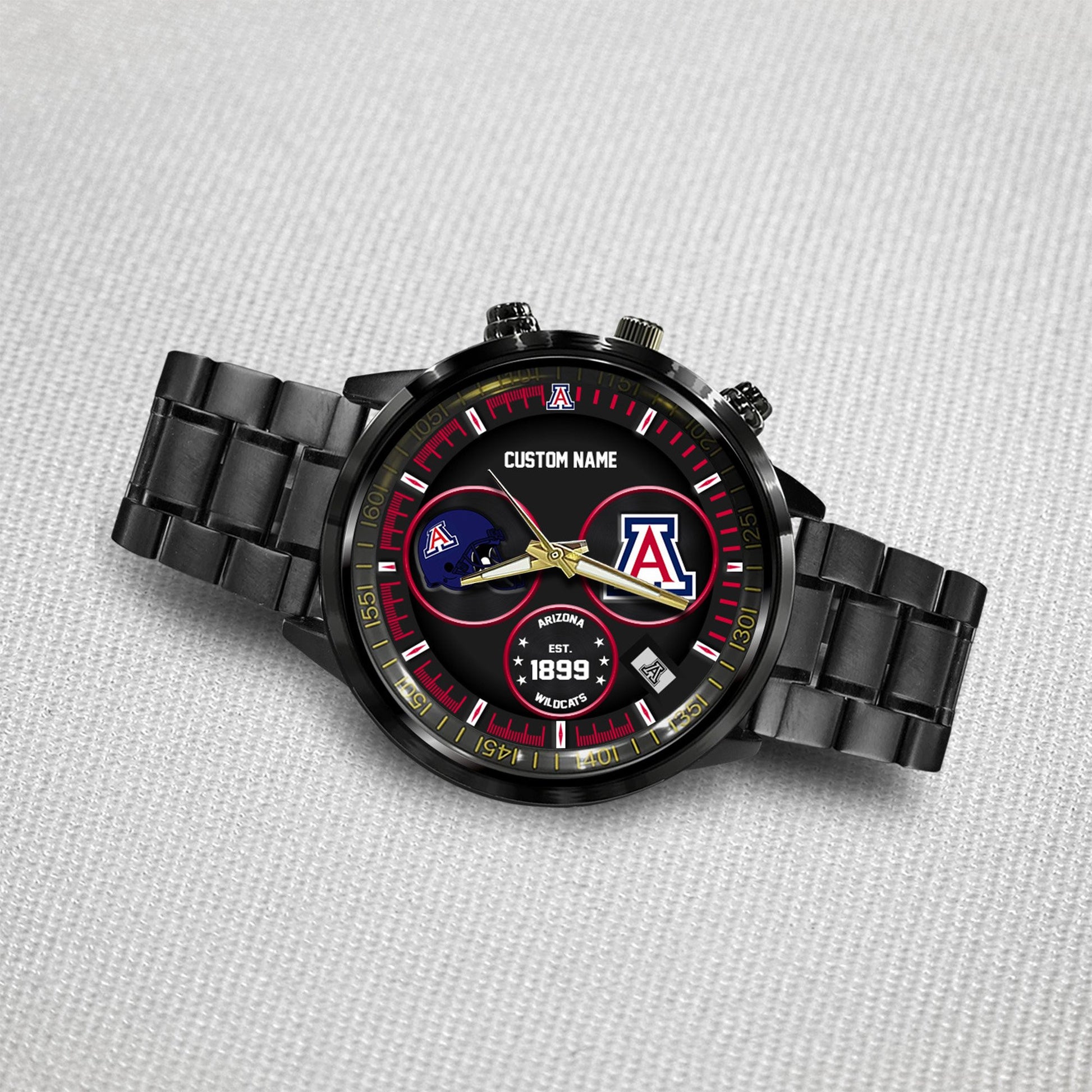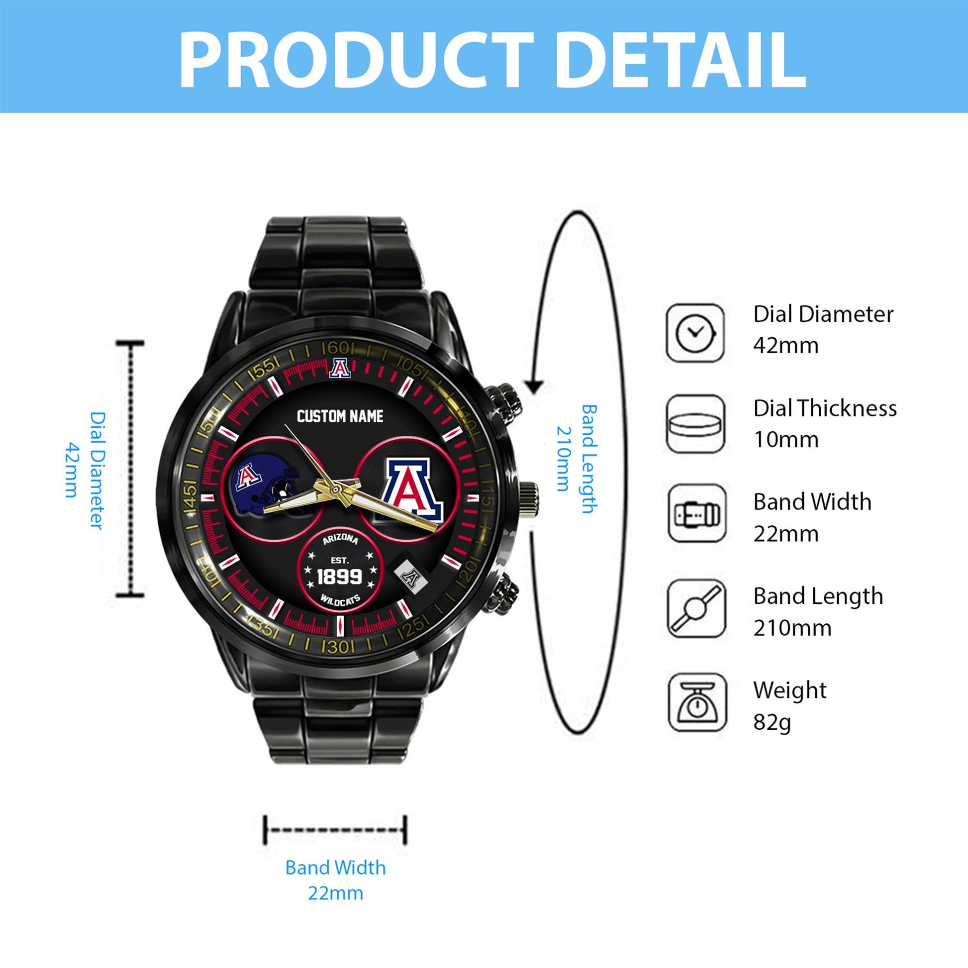 Arizona Wildcats Black Stainless Steel Watch - Custom Name 58437