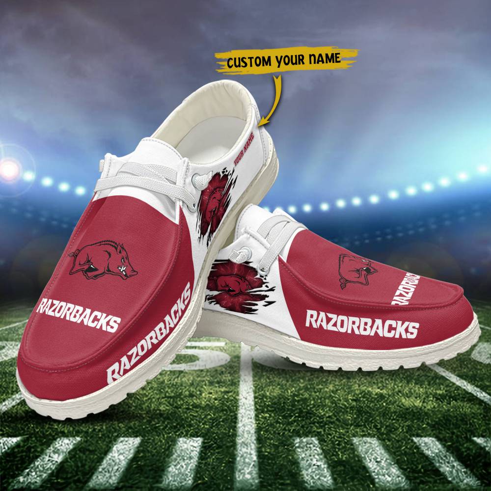Arkansas Razorbacks Hey Dude Shoes, NCAA Shoes, White Hey Dudes - Ingenious Gifts Your Whole Family