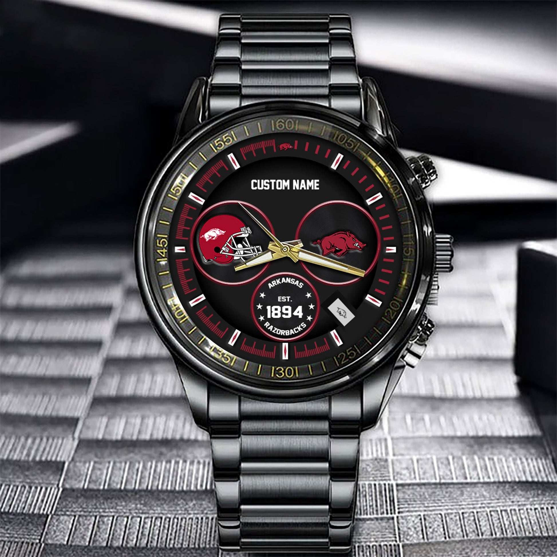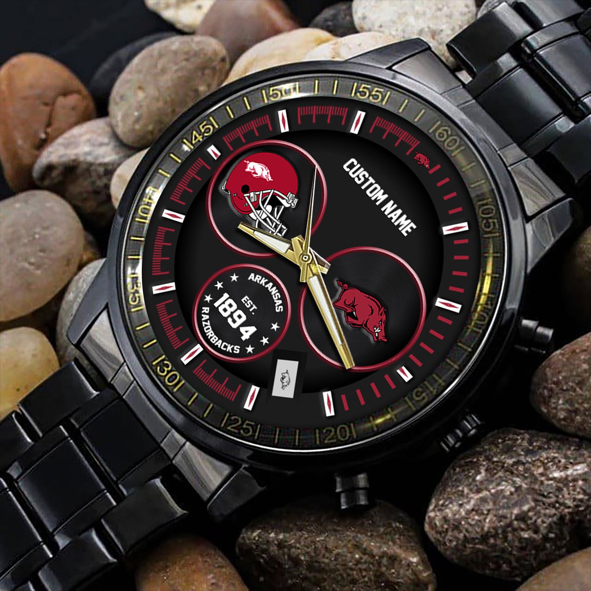 Arkansas Razorbacks Black Stainless Steel Watch - Custom Name 58437