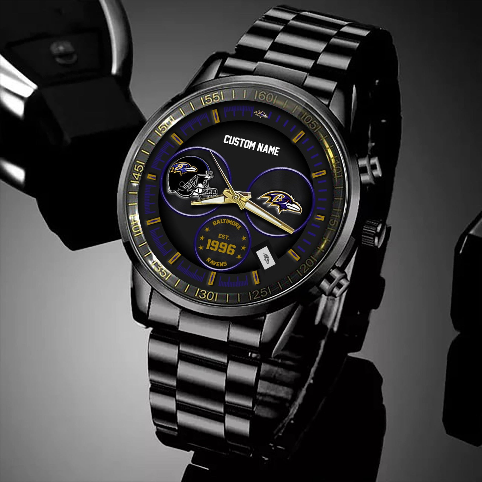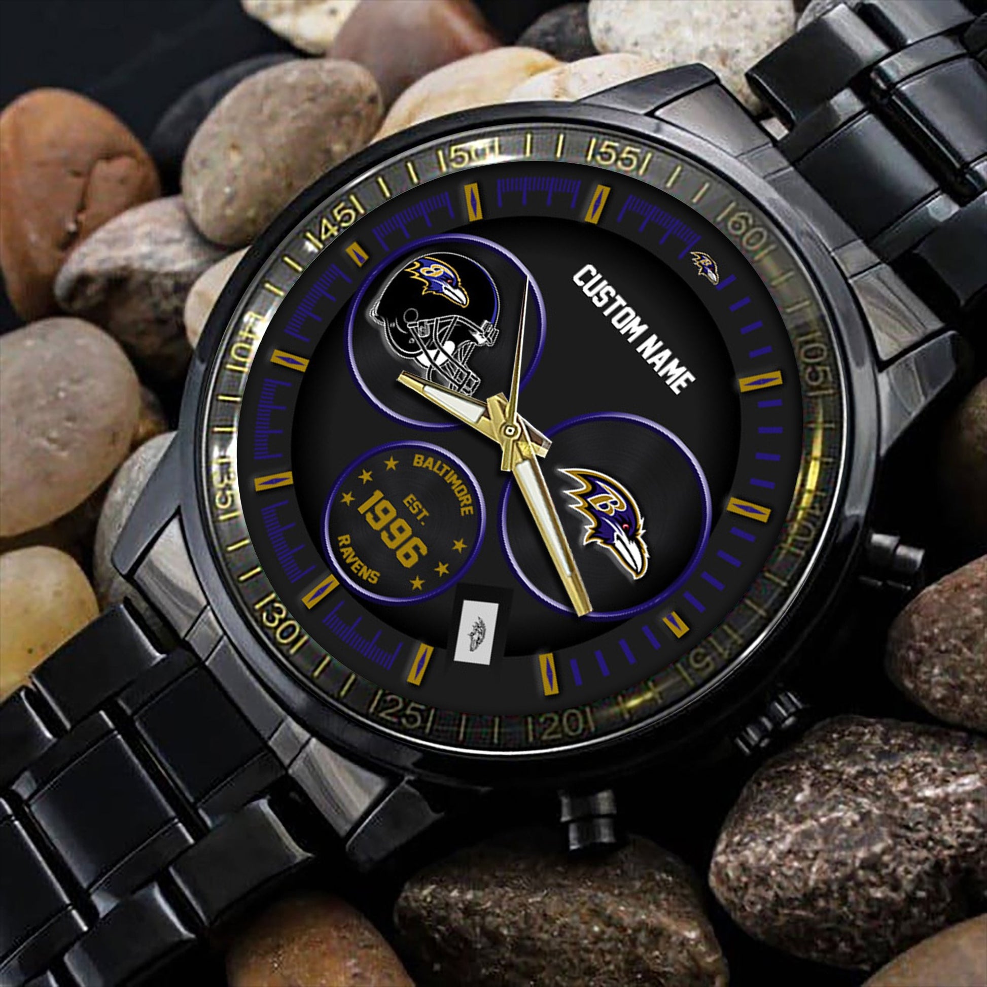 Baltimore Ravens Black Stainless Steel Watch - Custom Name 58437