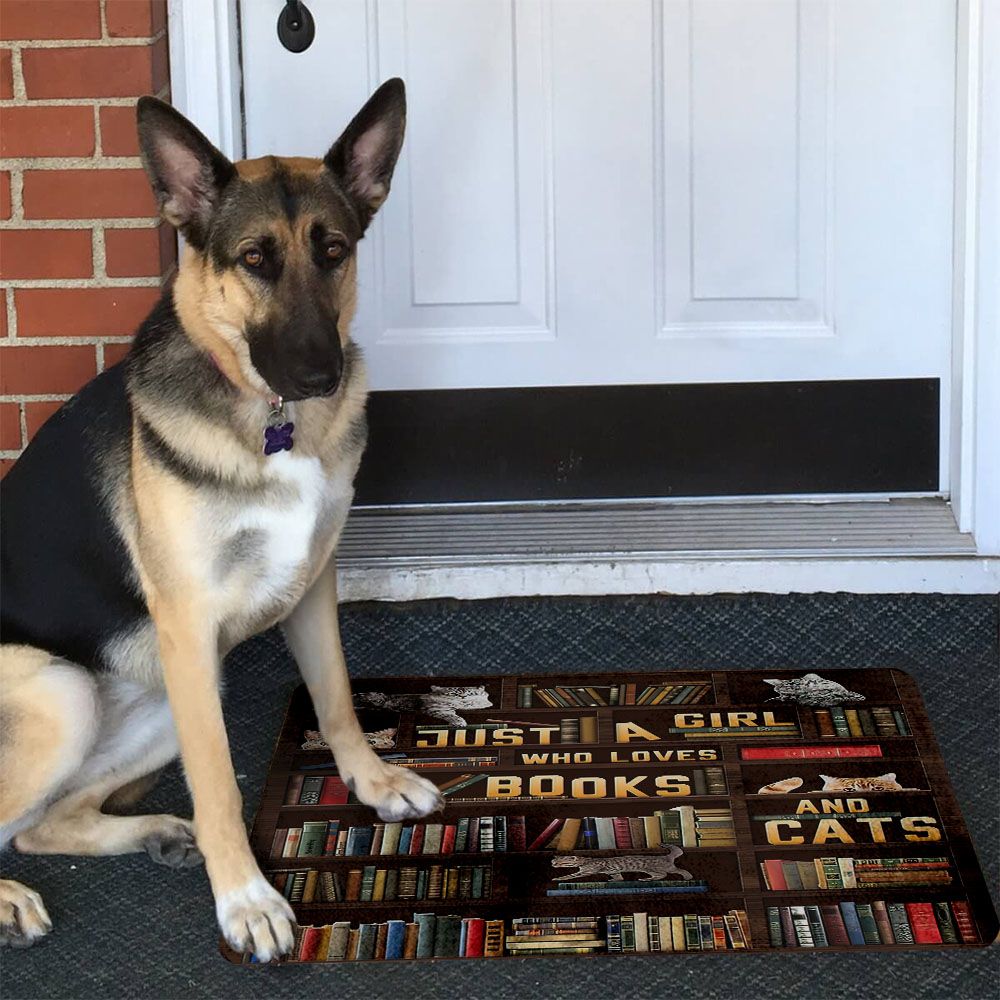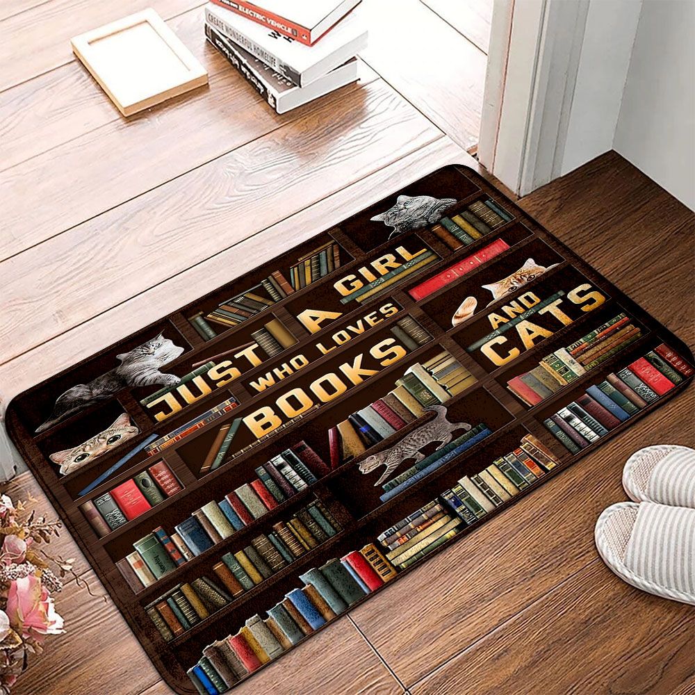 Cats Doormat - Just A Girl Who Loves Books And Cats Pattern Brown Doormat - Gifts Ideas For Cat Lovers
