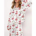 Christmas Flamingo Martini Satin Pajama Set For Women