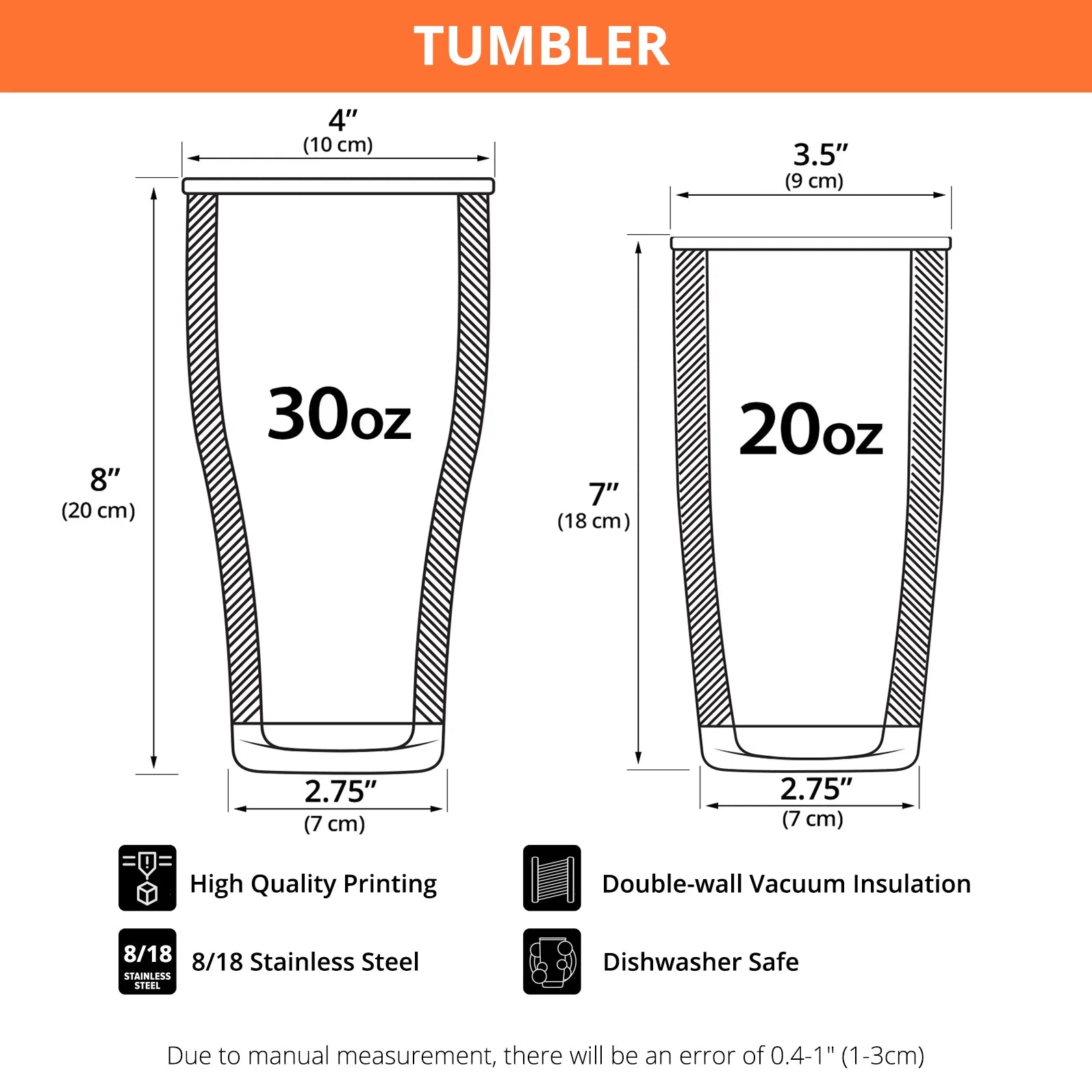 - Each of our Stainless Steel Tumbler is custom-hand-made of SUS 304 body and premium material lid.