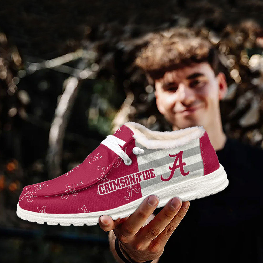 Custom Name NCAA 01 Alabama Crimson Tide Hey Dude with warm fur lining Shoes