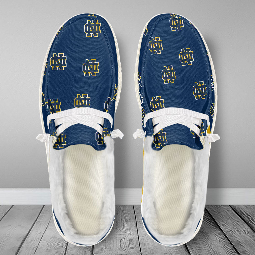 Custom Name NCAA 02 Notre Dame Fighting Irish Hey Dude with warm fur lining Shoes