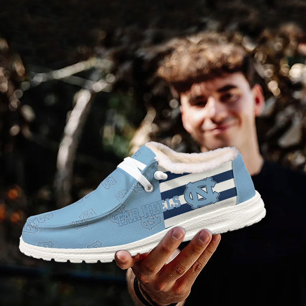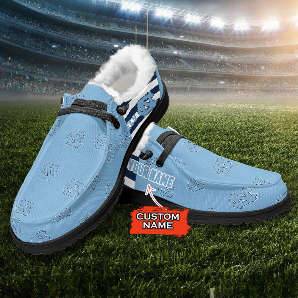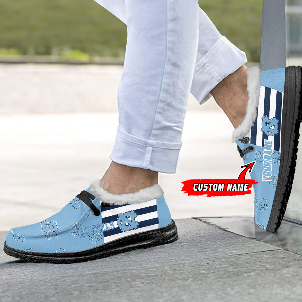 Custom Name NCAA 20 North Carolina Tar Heels Hey Dude with warm fur lining Shoes