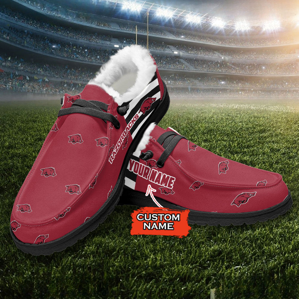 Custom Name NCAA 22 Arkansas Razorbacks Hey Dude with warm fur lining Shoes