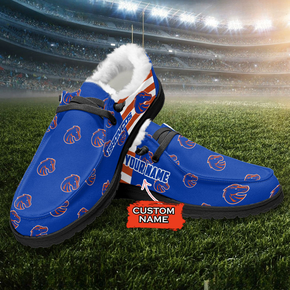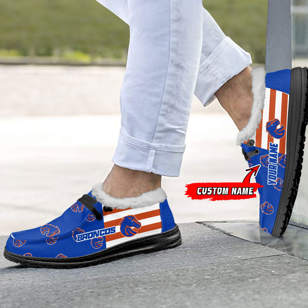 Custom Name NCAA 23 Boise State Broncos Hey Dude with warm fur lining Shoes