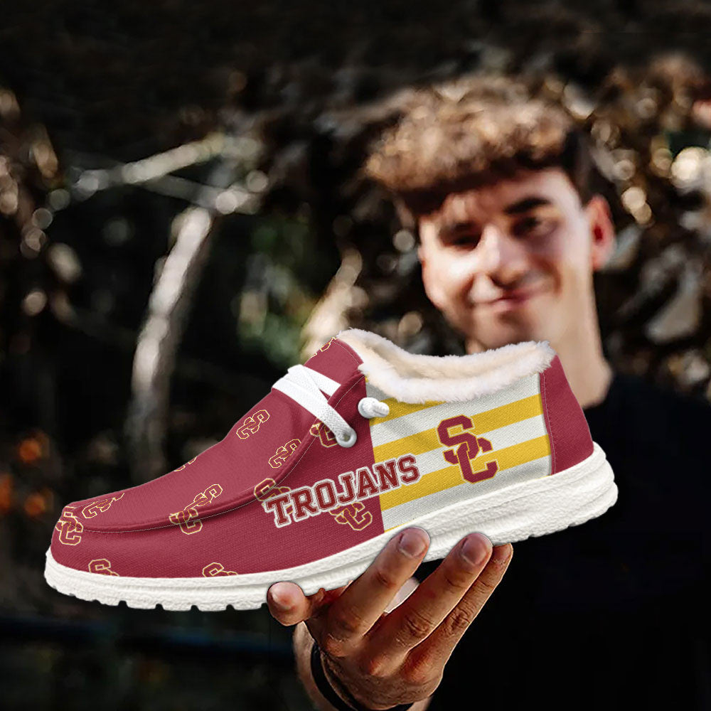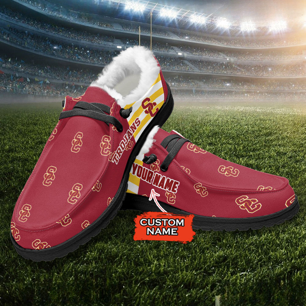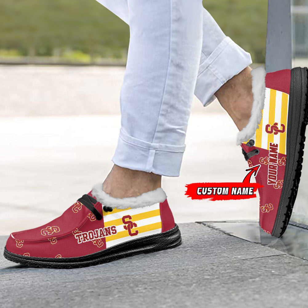 Custom Name NCAA 34 USC Trojans Hey Dude with warm fur lining Shoes