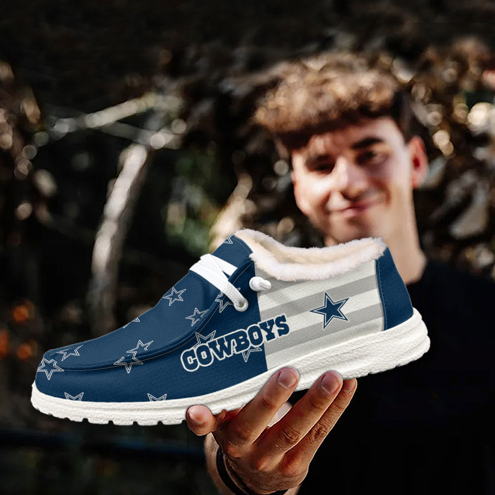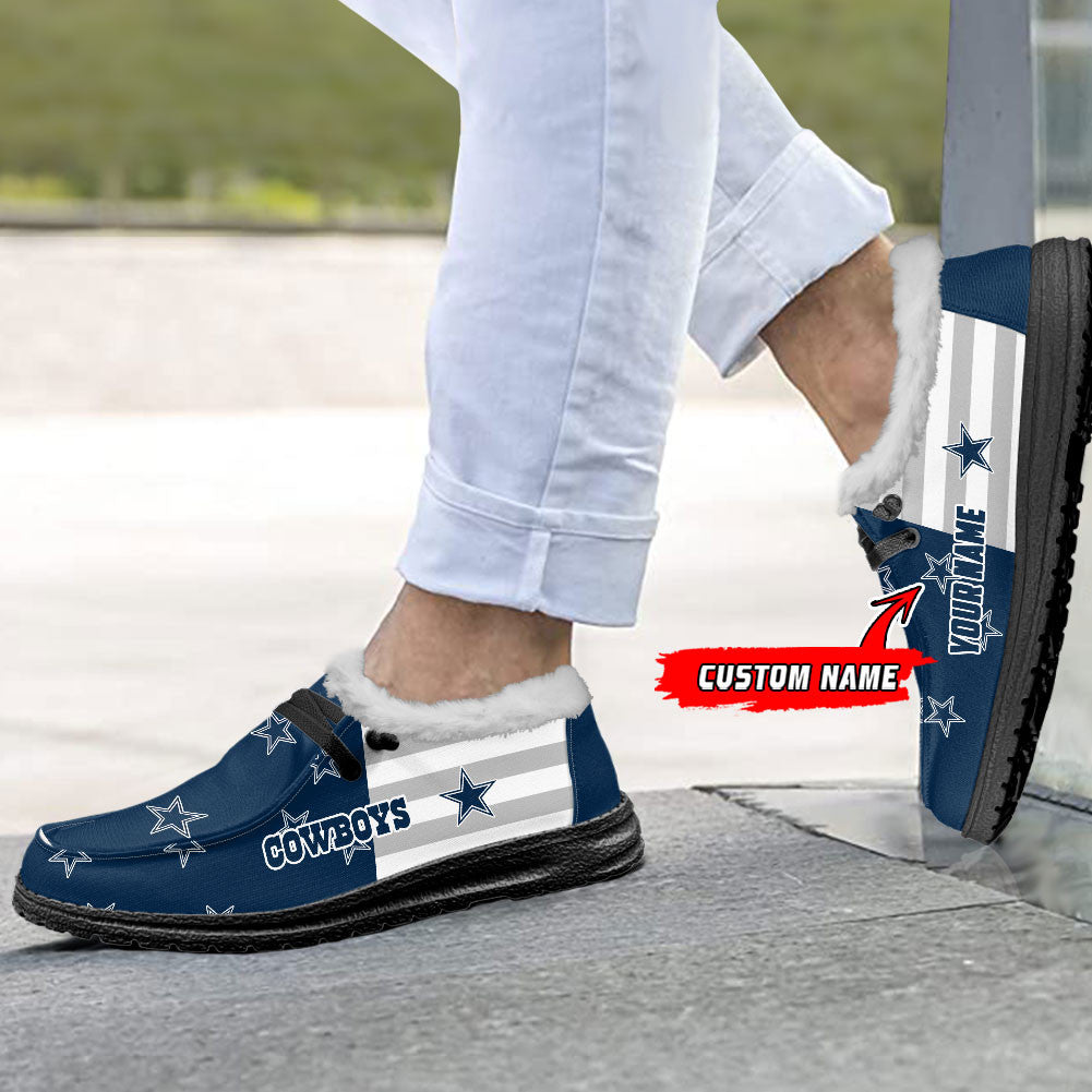 Custom Name NFL 09 Dallas Cowboys Hey Dude with warm fur lining Shoes