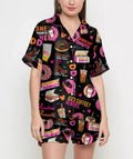 Donuts Pajamas Satin Set, Party Pajamajam, Mother's Day Gift, Birthday Gift, Pjs For Women, Bridesmaid Gifts, Gift For Her