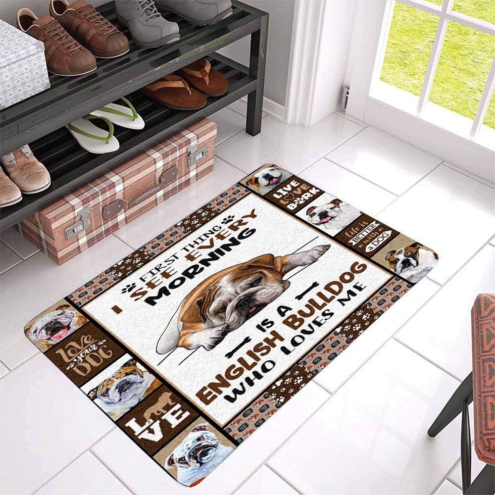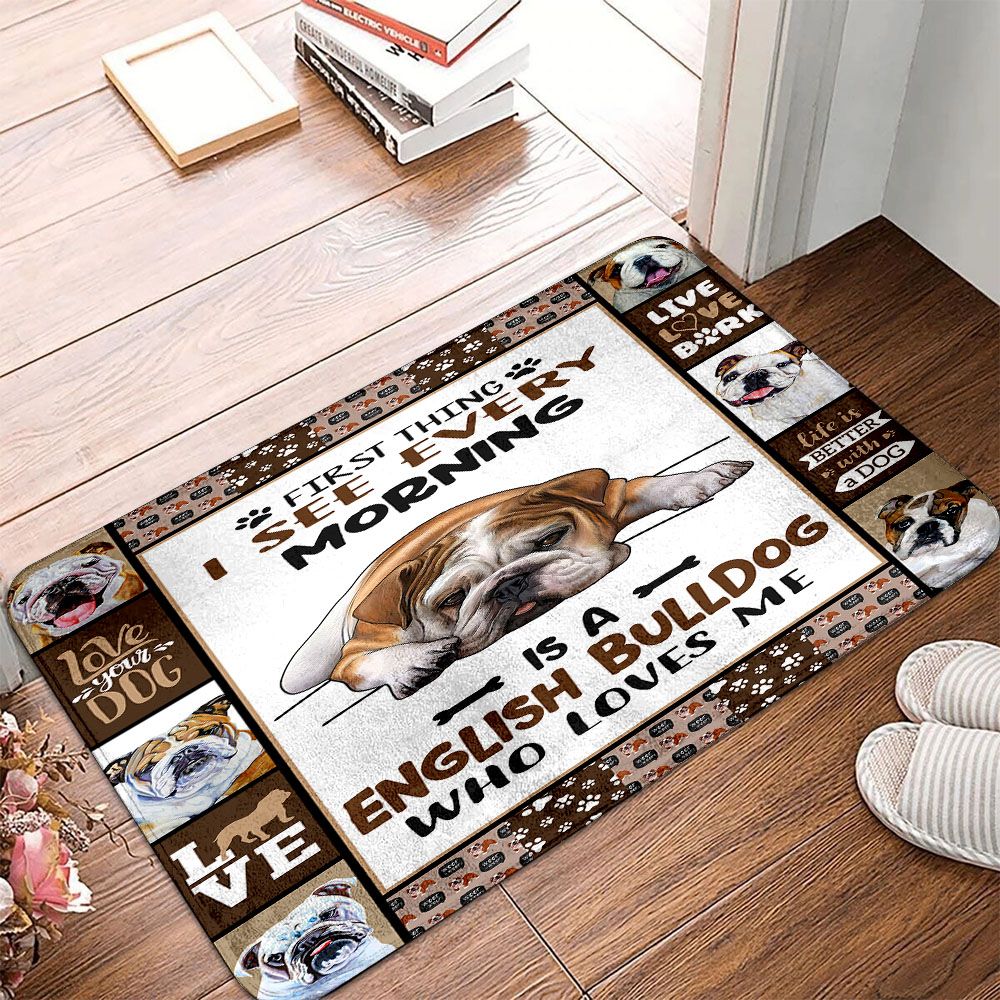 English Bulldog Doormat - First Thing I See Every Morning Is My Bulldog Doormat - Gift For Dog Lovers